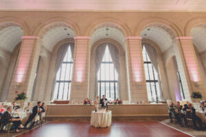 The architecture evokes a sense of grandeur and formality. Walking in, guests are greeted by stately pillars, lofty ceilings, and elegant design.